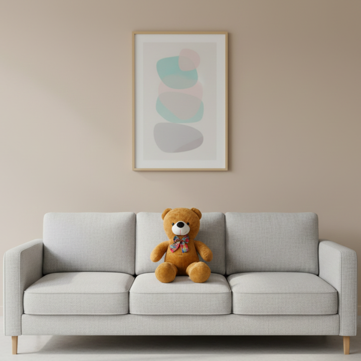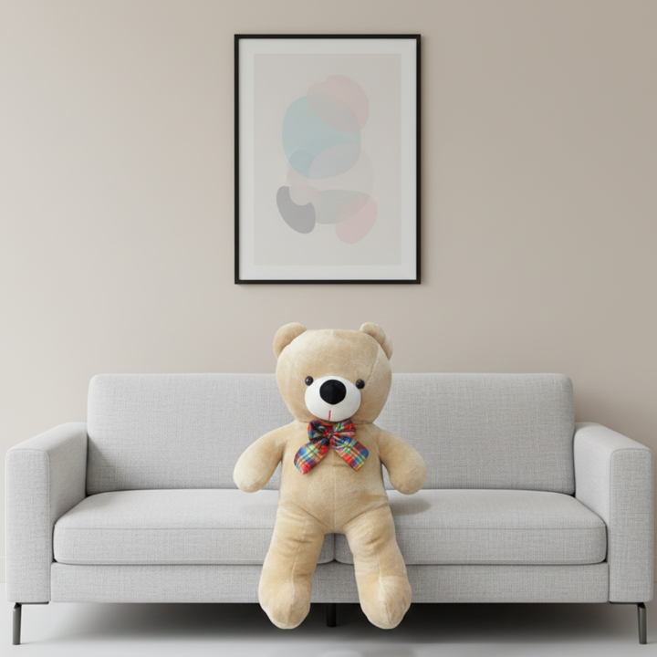 Meet the Classic Beige Teddy Plush, a timeless soft toy designed to bring comfort, charm, and warmth to any space. This teddy features a smooth beige coat, a soft white muzzle, and a cute rounded face with gentle stitched details. The colorful checkered bow adds a playful touch, making it perfect for gifting or decorating.