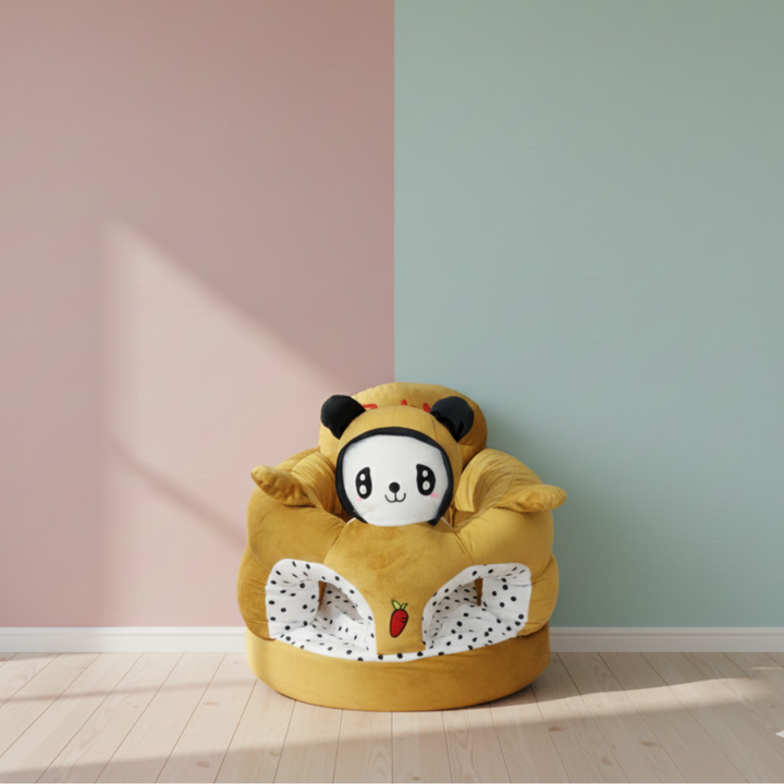 The charming panda face, cute carrot embroidery, and dotted inner seat make it visually attractive and perfect for both boys and girls. It is lightweight, portable, and great for use in the living room, bedroom, nursery, or even for photoshoots.